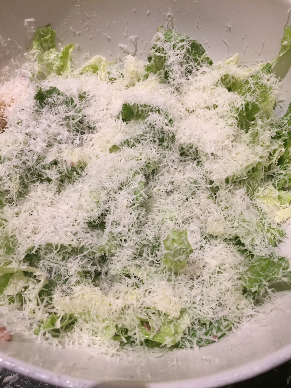3. Finely chop the anchovy fillets and add to the lettuce and mix.